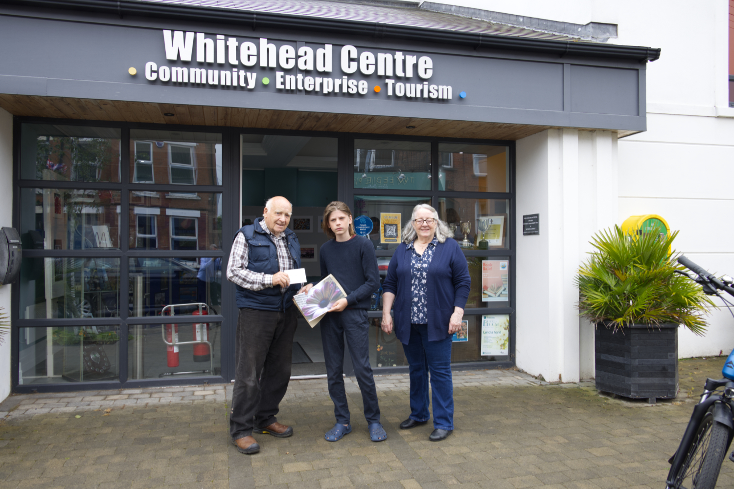 Jimmy from Islandmagee Camera Club, Samuel Barr 2nd place winner under 15’s and Whitehead Centre Manager Rosemary.