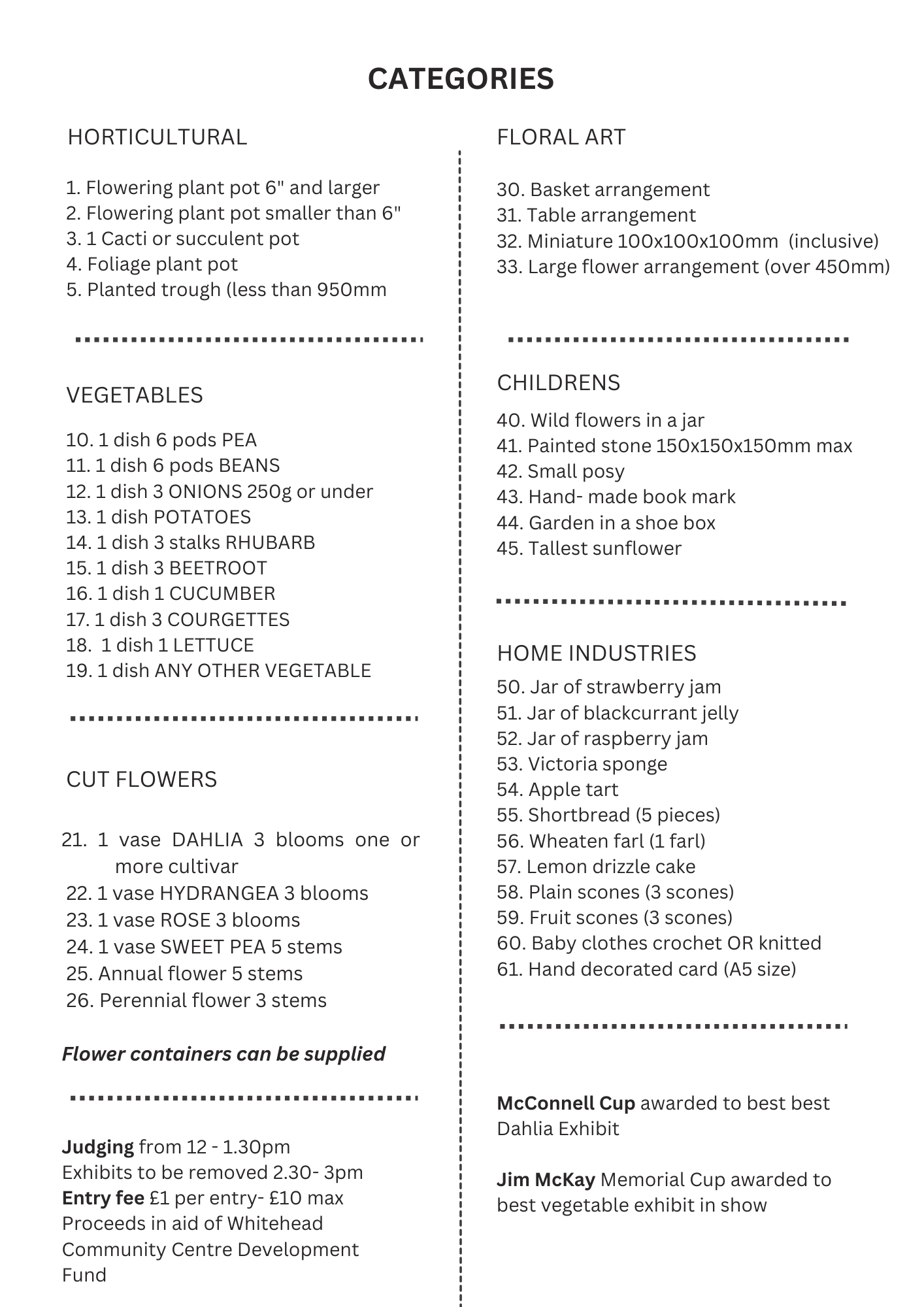 Initially, Whitehead Flower Show- it has now expanded to include home industries, crafts and a kids section.